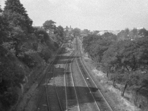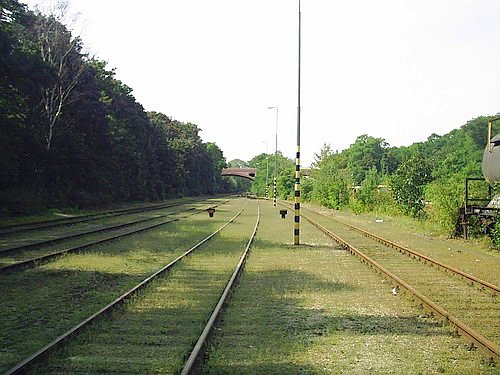 gleicher Standort 1978, links das alte Gleis zum Flughafen, rechts das Streckengleis der NME Richtung Rudow