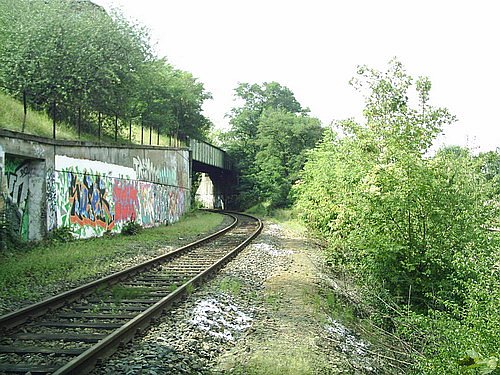 unter der Brücke Oderstraße, an diesen Punktzweigte die ehemalige Anschlussstrecke zum Flughafen Tempelhof ab