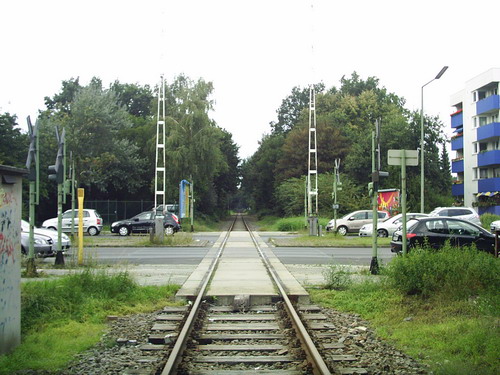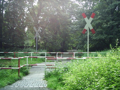 Rückbilck auf dem Bahnübergang Richtung Britz
