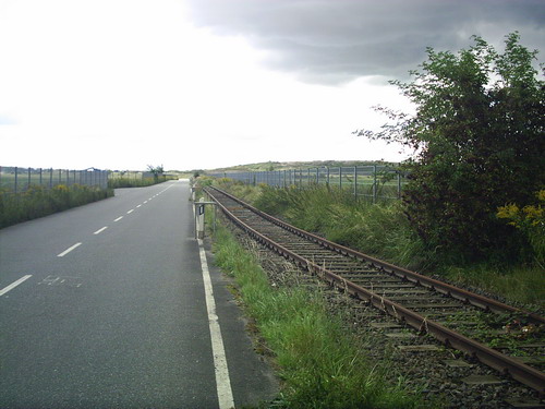 an diesen Punkt biegt die Strecke von der alten Trasse ab, der folgende Teil wurde nach der Wende gebautund führt zur einer Mülldeponie
