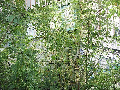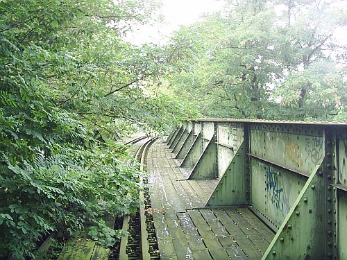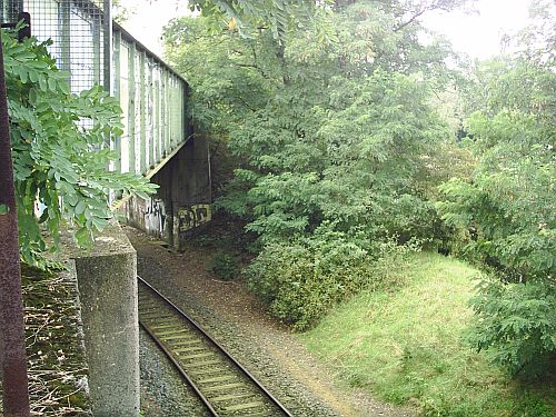 hinter der Brücke kurz vor der Überfahrung der Ringbahn ab hier viel Grün