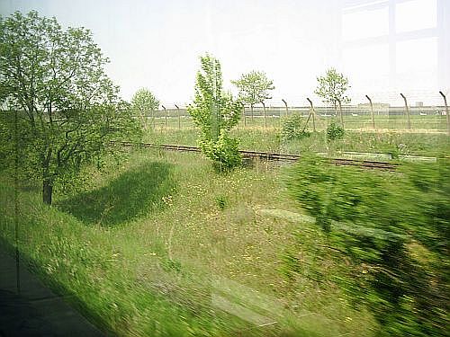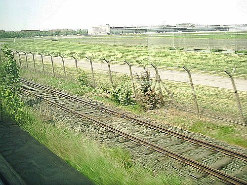 jetzt rechts von den Gleisen der Ringbahn im Hintergrund der Flughafen Tempelhof