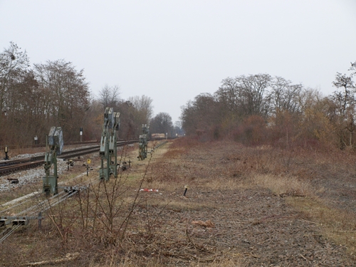 links die zwei Gleise Richtung Bhf Wörth Badepark, das Gleis in der Mitte Richtung Kandel und die rechten Richtung Germersheim