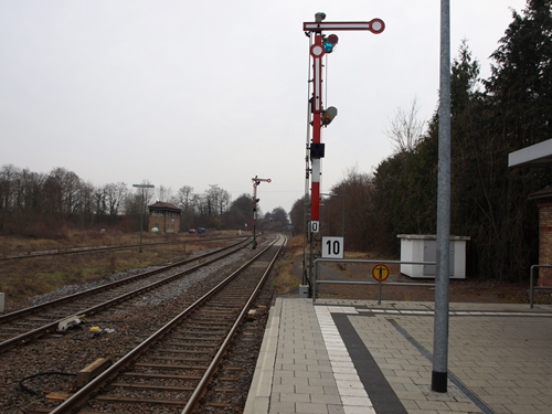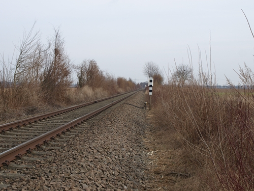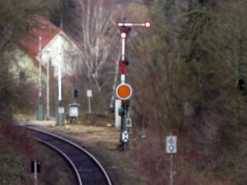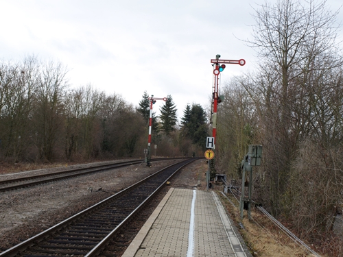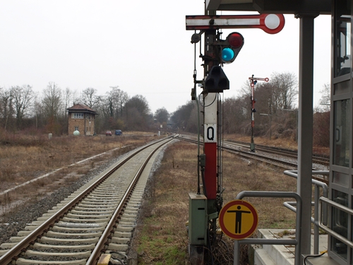 Blick auf das Einfahrtssignal vom Bhf Kandel