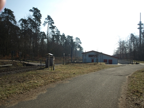 Lokschuppen der S-Bahn an der Endhaltestelle Bhf Wörth Badepark