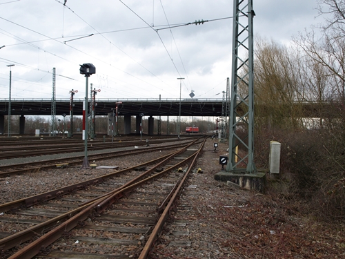 Blick in den Bhf Karlsruhe - Knielingen von Karlsruhe die Gütergleise sind schon entfernt