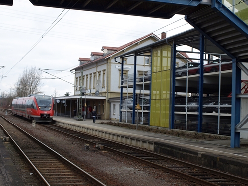 Blick vom Bahnsteig Wörth Alte Bahnmeisterrei auf dem Bahnhof Wörth