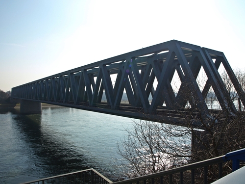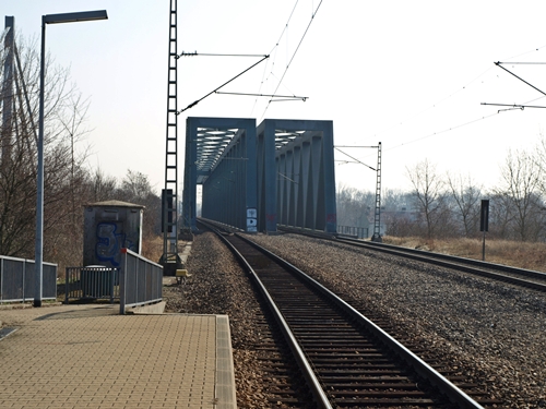 Blick vom Bahnsteig Maximiliansau auf die Rheinbrücke