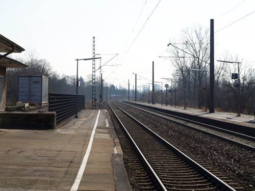 Blick auf dem Bahnsteig Wörth Alte Bahnmeisterrei