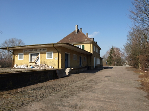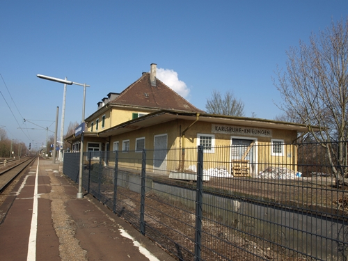 das Bahnhofsgebäude Bhf Karlsruhe - Knielingen Gleisseite