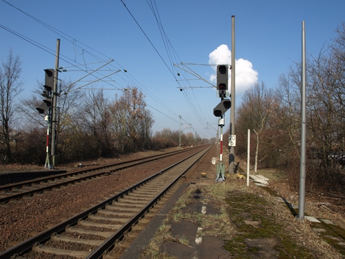 Blickrichtung Bhf Karlsruhe - Knielingen vom Bahnsteig Karlsruhe Mühlburg