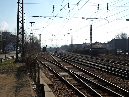 Blick auf die Bahnstrecke Richtung Karlsruhe Hbf