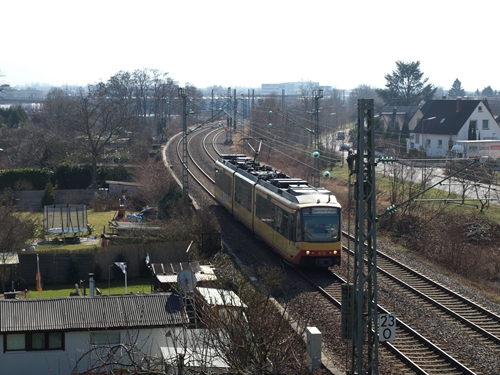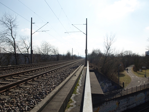 ein Stück weiter entlang der Bahnstrecke Richtung Karlsruhe Hbf