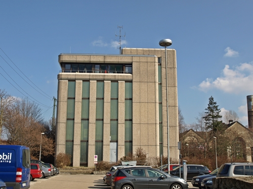 die Seitenansicht vom Stellwerk Karlsruhe Hbf